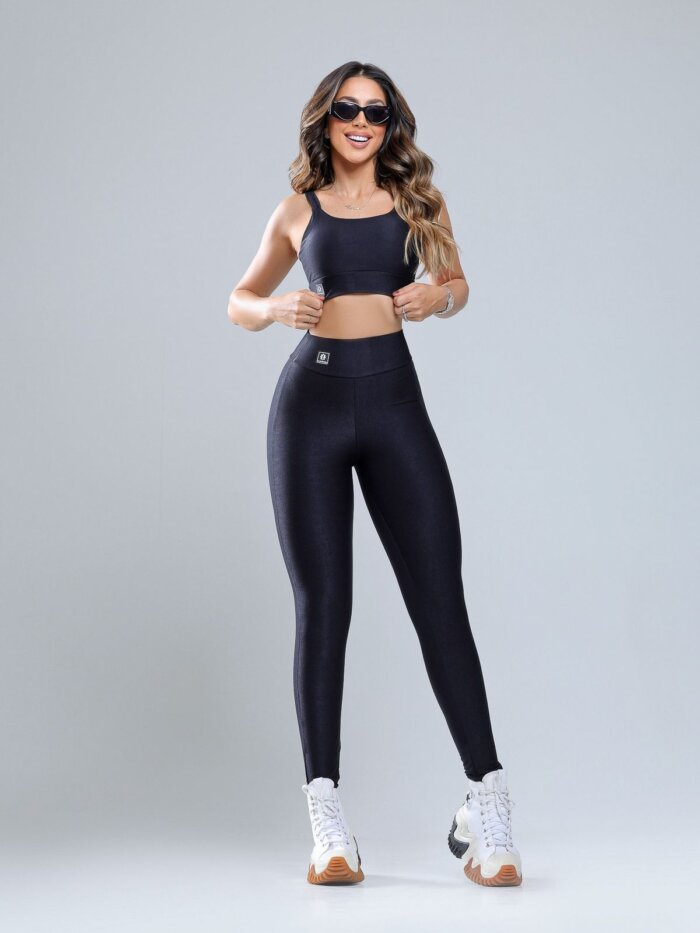 Legging Tradicional: A legging do conjunto oferece um caimento impecável, sem o franzido empina bumbum, proporcionando uma silhueta elegante e discreta. O tecido de alta qualidade, com 84% poliamida e 16% elastano, garante elasticidade superior, toque macio na pele e gerenciamento de umidade para mantê-la seca e confortável.